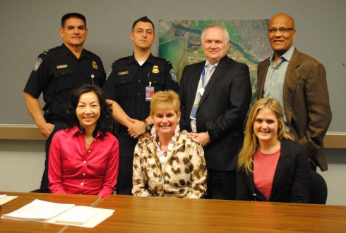 Clockwise from top left: Officer Gonzalez, USCBP; Officer Zumpano, USCBP; Jim Boyle, general manager Hudson Group; Mikel Walker, general manager, HMSHost; Kristen Neal, manager, Absolute Spa; Susan Steine, director of commercial services, Airport Authority; and Freda Cheung, CEO, Canada, World Duty Free.