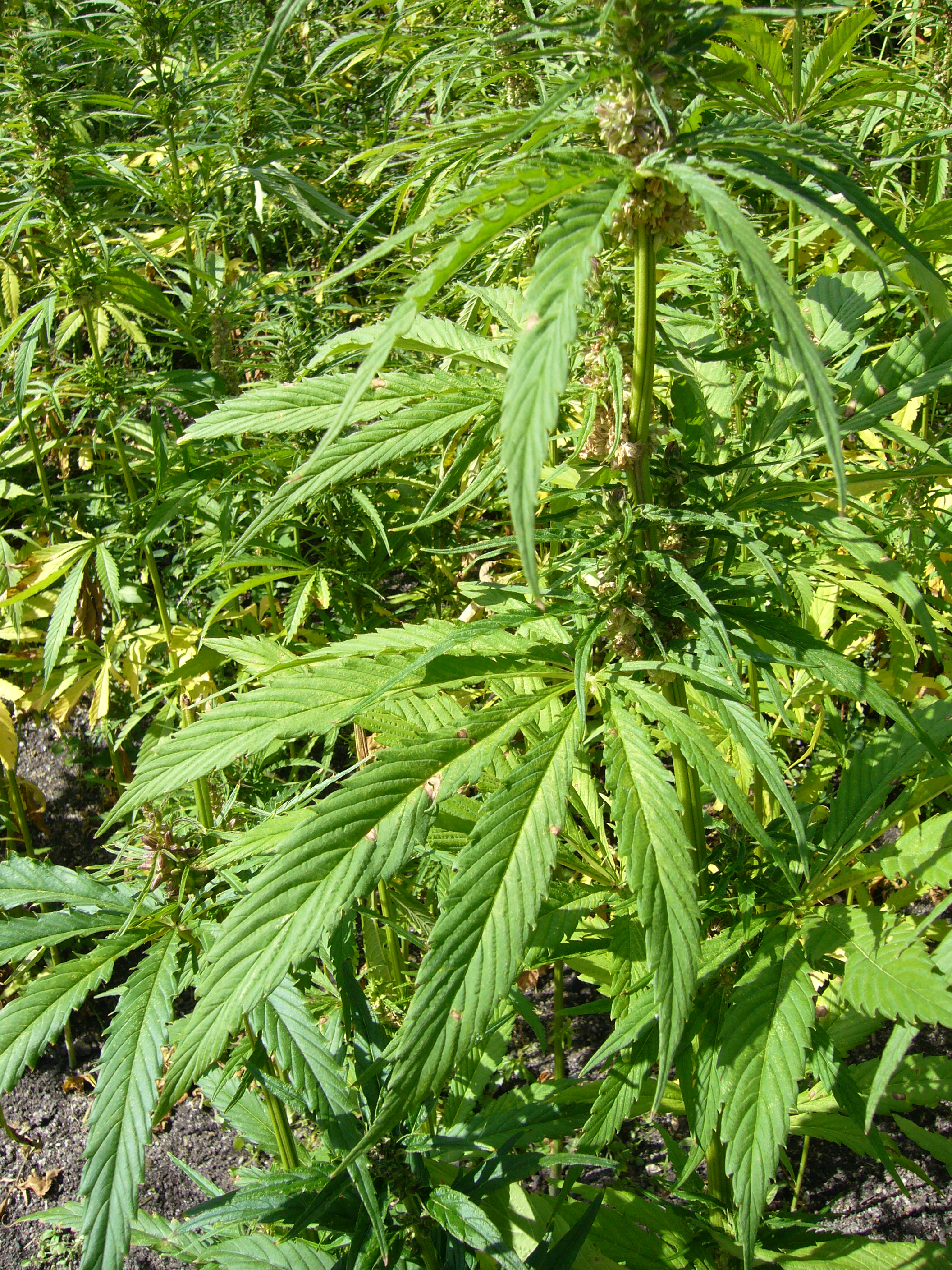 Leaves from the cannabis plant are bright green and have a distinctive shape with five or seven leaflets. The flowering tops and upper leaves are covered in a sticky resin.