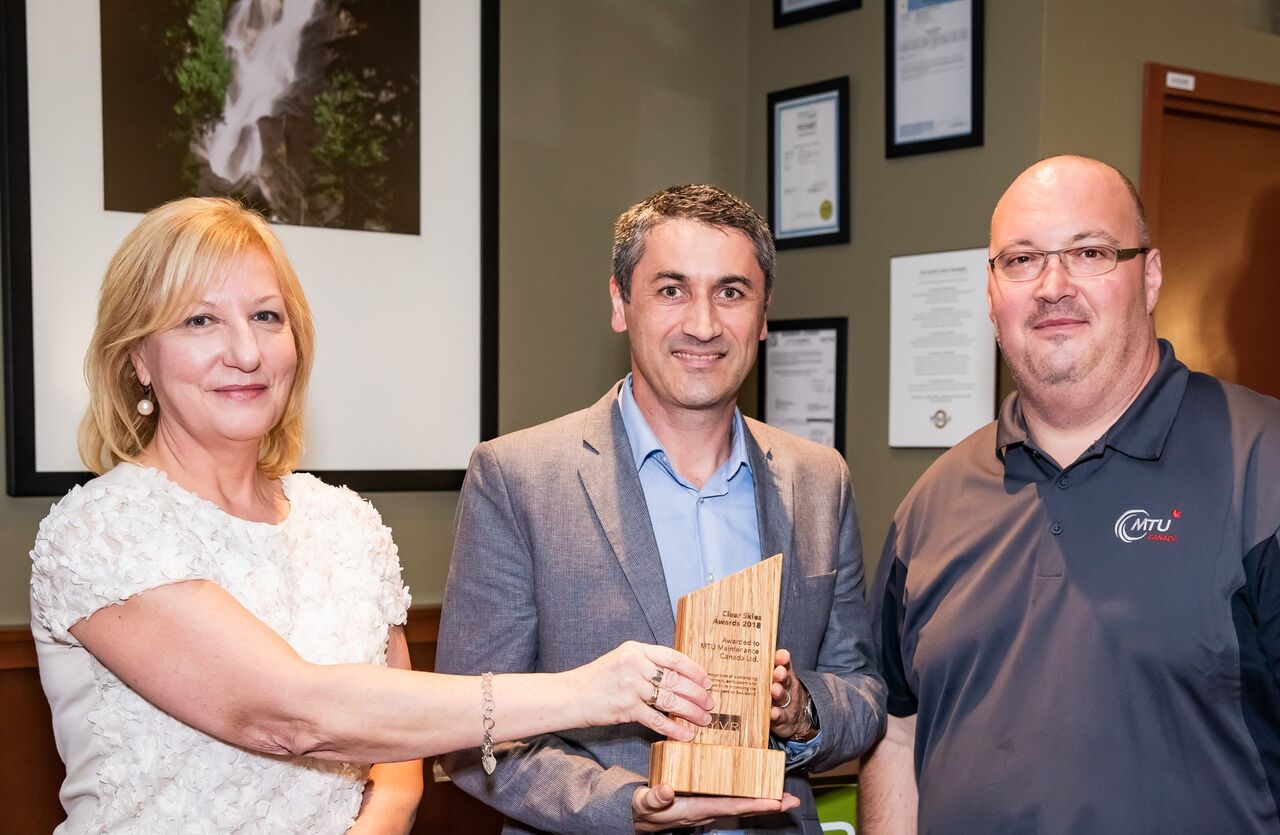 Cristofor Ursache and George Topic accepted the 2018 Clear Skies Award, airside/groundside category, on behalf of MTU Maintenance.